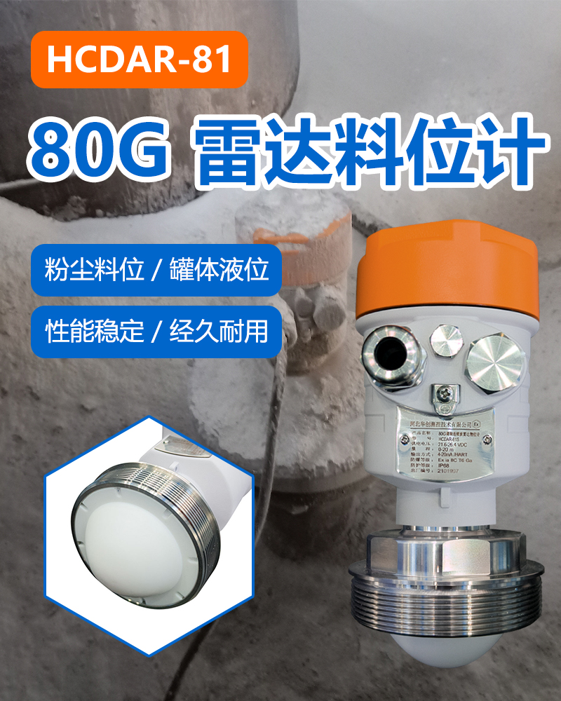 HCDAR-8x系列是一種采用特殊毫米波(FMCW)技術(shù)的物位測(cè)量儀表。工作頻率76-81GHz,輸出信號(hào)有兩線制(4-20)mA,四線制(4-20)mA以及RS485,最大量程達(dá)120m,盲區(qū)最小至8cm。天線波束角度最小約3°,對(duì)液體、固體和粉塵物料都能實(shí)現(xiàn)精確的測(cè)量。